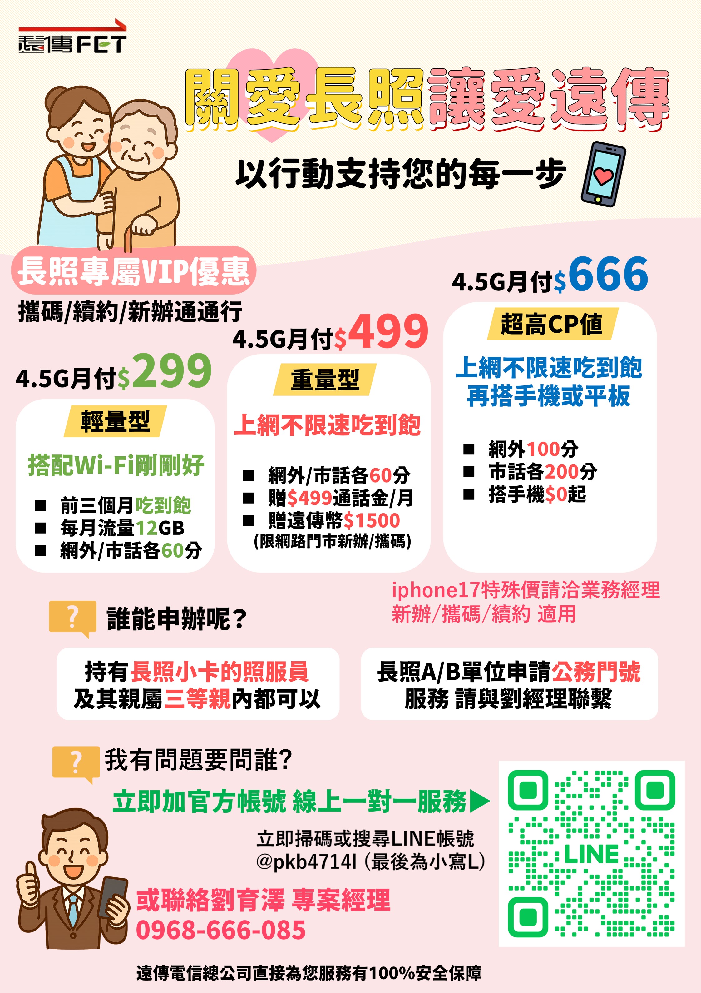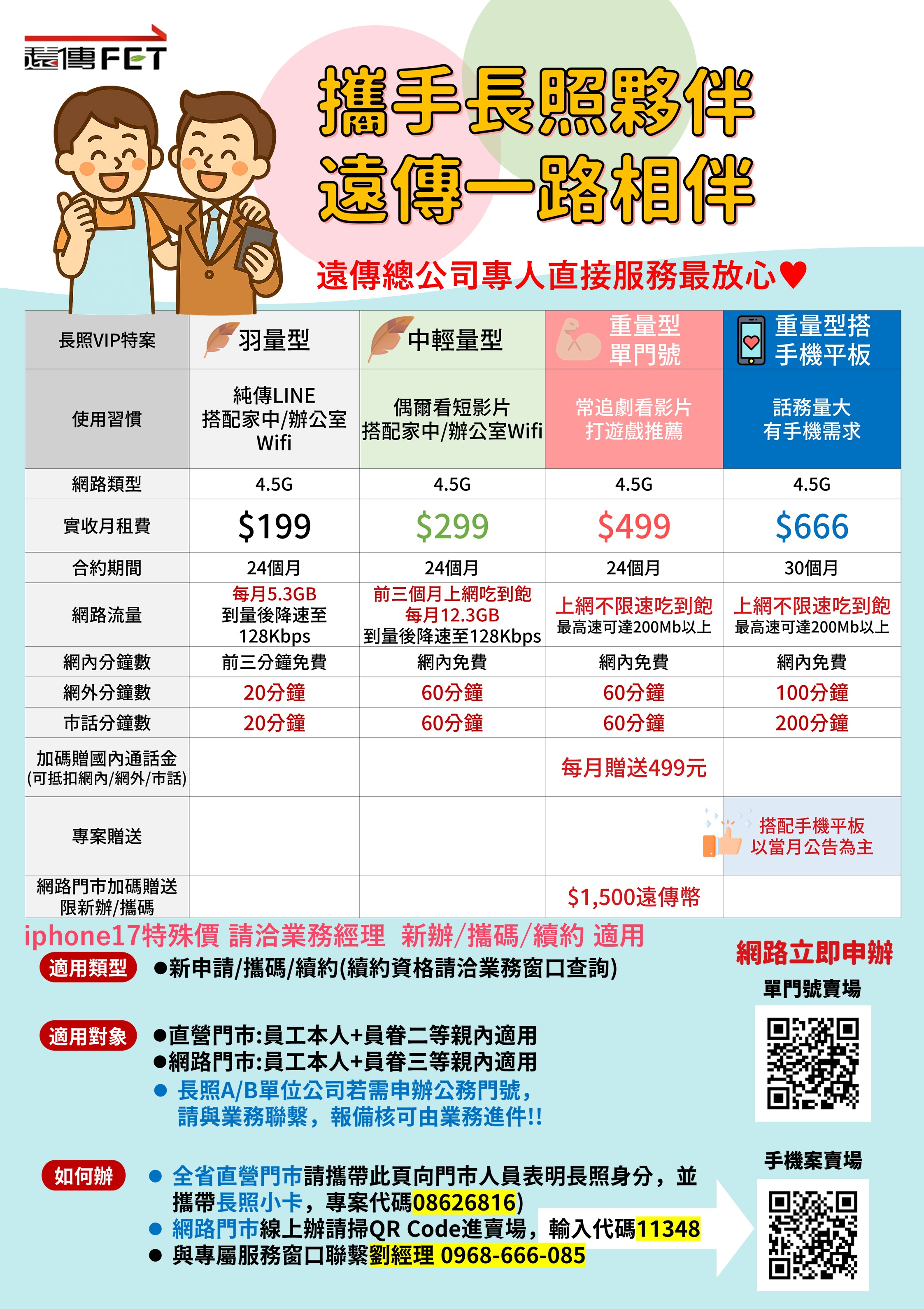 台灣長期照護專業協會*會員專屬*遠傳電信優惠方案